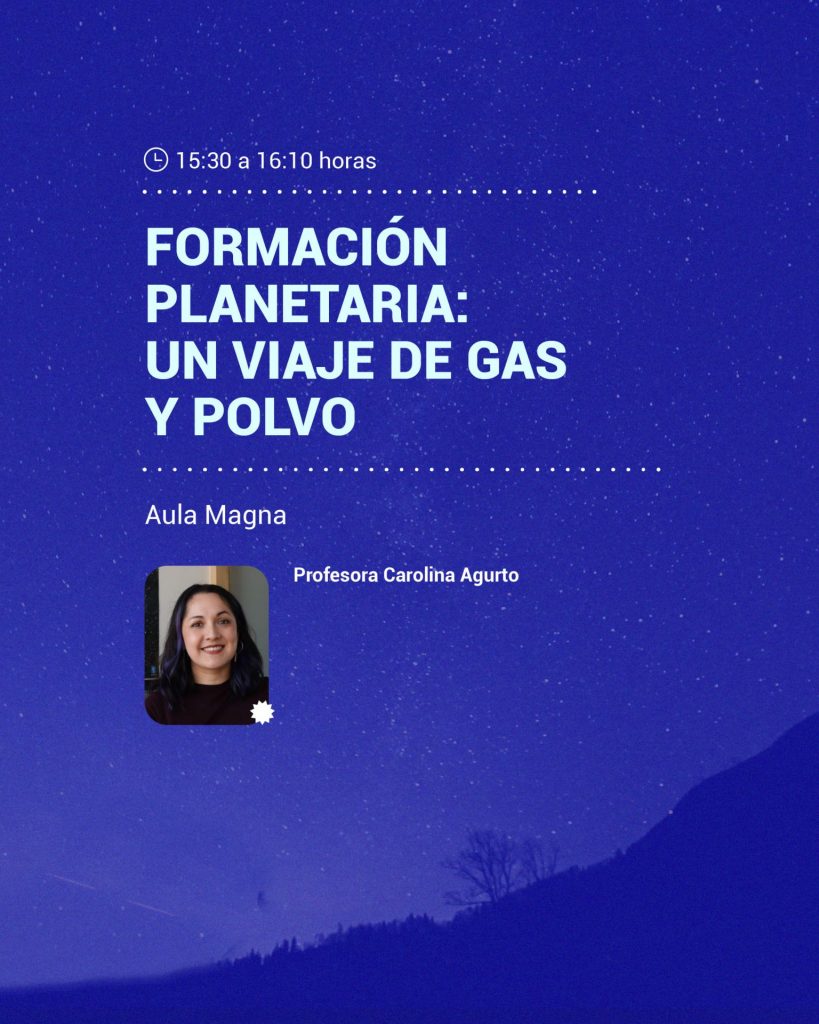En esta charla se abordarán los procesos físicos que dan origen a los sistemas planetarios, explorando cómo el gas y el polvo presentes en discos protoplanetarios evolucionan hasta formar mundos como los que observamos en nuestro Sistema Solar y en otros sistemas estelares.